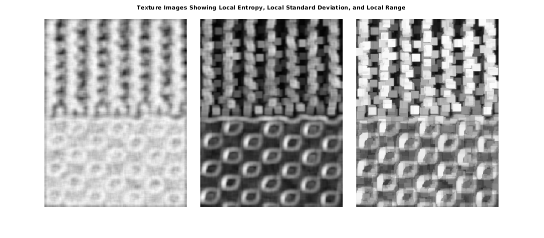 E = entropyfilt(I); S = stdfilt(I,ones(9)); R = rangefilt(I,ones(9));