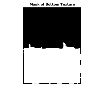 mask = imfill(closeBWao,'holes'); imshow(mask); title('Mask of Bottom Texture')