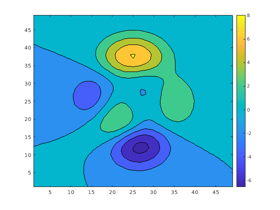 contourf(peaks) c = colorbar;
