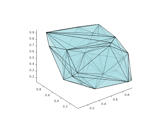 rng('default') X = rand([30 3]); tet = delaunay(X); faceColor = [0.6875 0.8750 0.8984]; tetramesh(tet,X,'FaceColor', faceColor,'FaceAlpha',0.3);