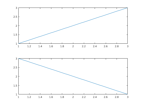 t = tiledlayout(2,1); nexttile plot([1 2 3]) nexttile plot([3 2 1]) copygraphics(t)