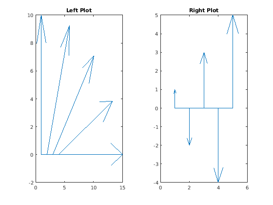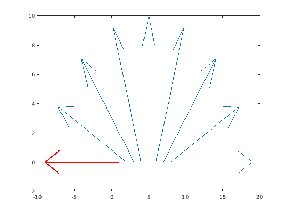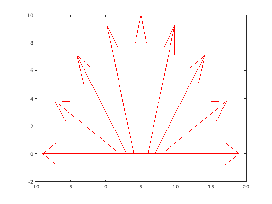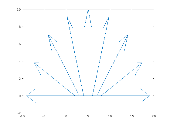 feather( стрелы графиков с помощью комплексных чисел заданы Z)Z, с действительной частью, указывающей на x-компоненты и мнимую часть, указывающую на y-компоненты. Этот синтаксис эквивалентен feather(real(Z),imag(Z)).