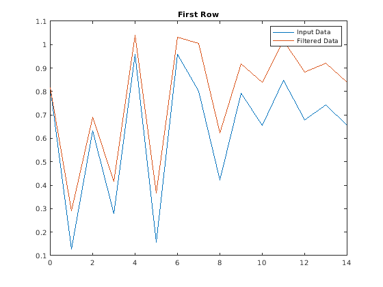 Если x матрица, затем filter действия по первому измерению и возвращают отфильтрованные данные для каждого столбца.
