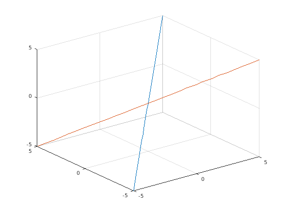 fplot3(@(t)t, @(t)t, @(t)t) hold on fplot3(@(t)-t, @(t)t, @(t)-t) hold off