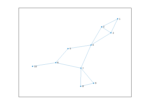 s = [1 1 2 2 3 4 4 5 6 6 7 7 8]; t = [2 3 3 4 4 5 7 6 7 10 8 9 9]; G = graph(s,t); p = plot(G);