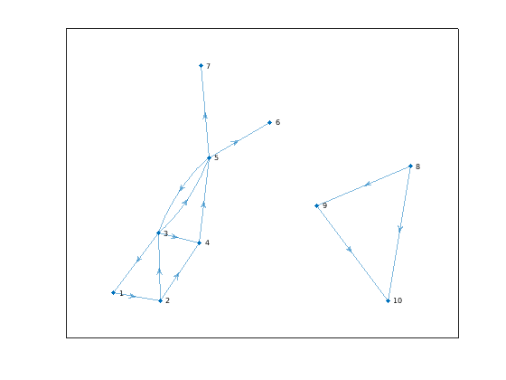 s = [1 2 2 3 3 3 4 5 5 5 8 8 9]; t = [2 3 4 1 4 5 5 3 6 7 9 10 10]; G = digraph(s,t,[],20); plot(G,'Layout','layered')
