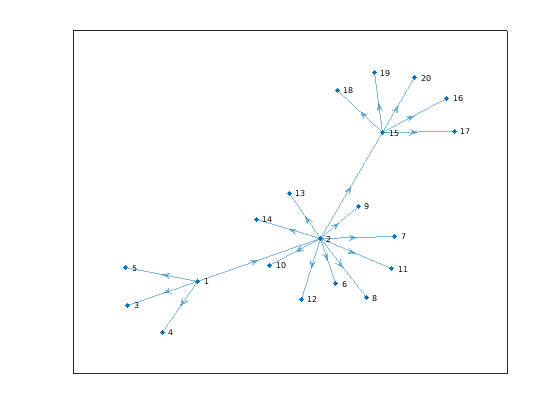 G = digraph(1,2:5); G = addedge(G,2,6:15); G = addedge(G,15,16:20)