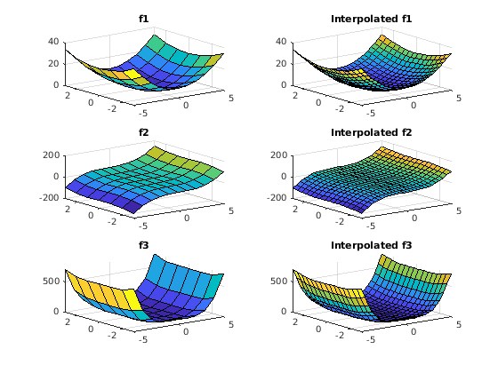 F для набора определенных данных. Можно оценить F в наборе точек запроса, таких как (xq,yq) в 2D, чтобы произвести интерполированные значения vq = F(xq,yq).