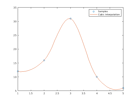 возвращает интерполированные значения функции переменных n в определенных точках запроса с помощью линейной интерполяции. Результаты всегда проходят через исходную выборку функции. Vq = interpn(X1,X2,...,Xn,V,Xq1,Xq2,...,Xqn)X1,X2,...,Xn содержите координаты точек выборки. V содержит соответствующие значения функции в каждой точке выборки. Xq1,Xq2,...,Xqn содержите координаты точек запроса.