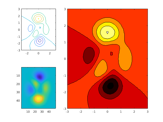 Figure contains 3 axes objects. Axes object 1 contains an object of type contour. Axes object 2 contains an object of type contour. Axes object 3 contains an object of type image.