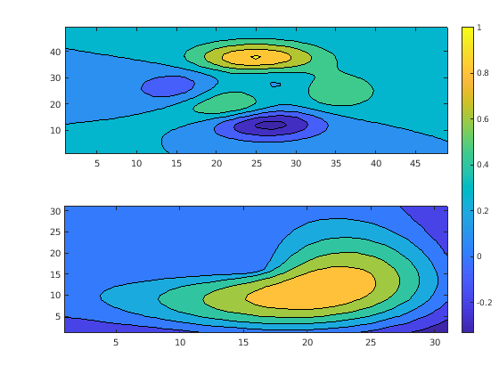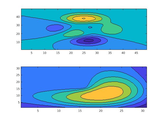 Figure contains 2 axes objects. Axes object 1 contains an object of type contour. Axes object 2 contains an object of type contour.