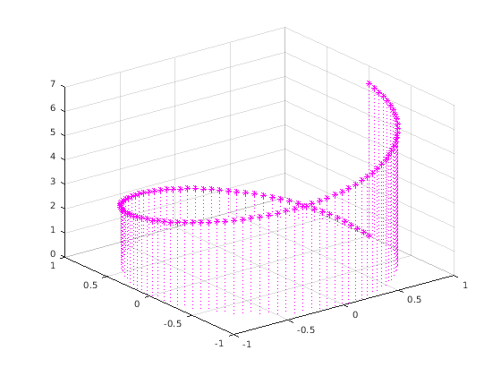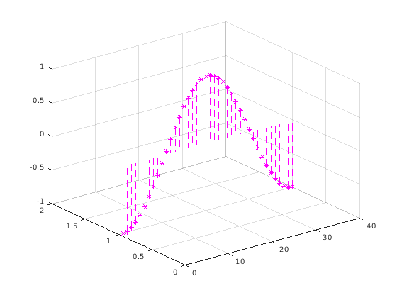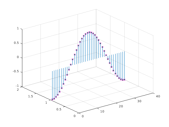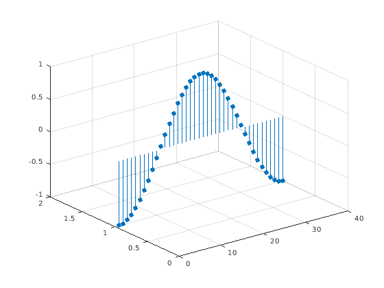 figure X = linspace(-pi/2,pi/2,40); Z = [sin(X); cos(X)]; stem3(Z)