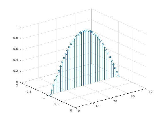 figure X = linspace(-pi/2,pi/2,40); Z = cos(X); stem3(Z)