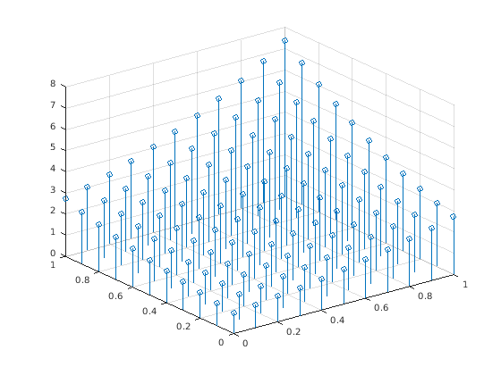 figure [X,Y] = meshgrid(0:.1:1); Z = exp(X+Y); stem3(X,Y,Z)