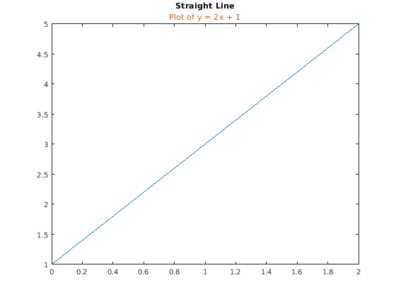 txt = subtitle('Plot of y = 2x + 1'); txt.Color = '#DD5500';