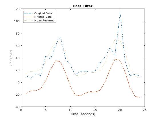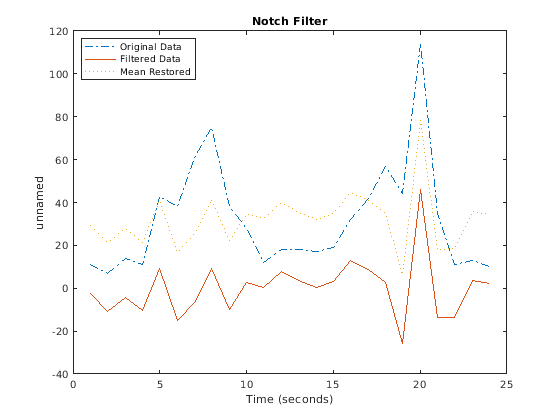 tsout = idealfilter( применяет идеальный (непричинный) фильтр типа tsin,interval,filtertype)filtertype к интервалам частоты, заданным interval для timeseries объект tsin.