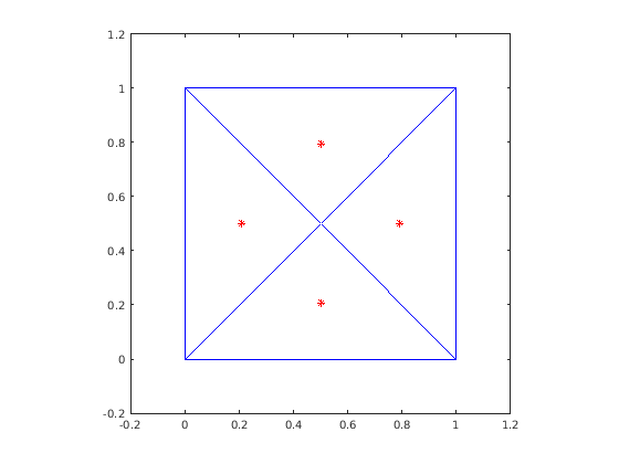 C = incenter(TR,ID) возвращает координаты центра вписанной окружности каждого треугольника или четырехгранника, заданного ID. Идентификационные номера треугольников или тетраэдров в TR соответствующие номера строк свойства TR.ConnectivityList.