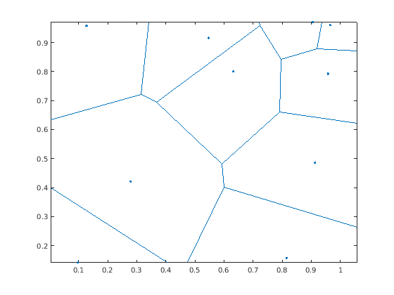 voronoi( строит ограниченные ячейки Диаграммы Вороного для 2D точек в векторах x,y)x и y.
