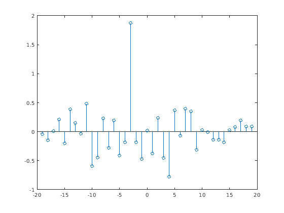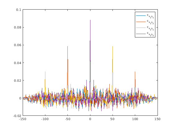 возвращает перекрестную ковариацию двух последовательностей дискретного времени. Перекрестная ковариация измеряет подобие между векторным c = xcov(x,y)x и переключенные (изолированные) копии векторного y в зависимости от задержки. Если x и y имейте различные длины, функция добавляет нули в конец более короткого вектора, таким образом, это имеет ту же длину как другой.