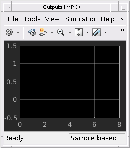 Откройте существующую ранее модель Simulink для симуляции с обратной связью. Модель объекта управления идентична той, используемой для линеаризации, в то время как контроллер MPC реализован с контроллером MPC блок, который имеет объект MPC рабочей области mpcobj как параметр. Ссылка для первого выхода является сигналом шага, повышающимся от нуля до одного для t=0, как только симуляция запускается. Ссылка для второго выхода