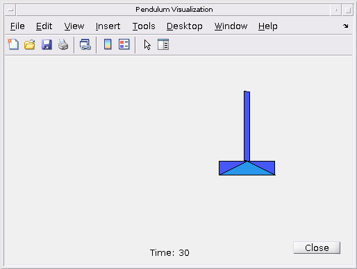 В первой стадии симуляции маятник качается от нисходящего положения равновесия до инвертированного положения равновесия. Ссылки состояния для этого этапа являются всем нулем.