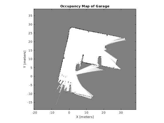 buildMap функция принимает показания сканирования лидара и сопоставленные положения, чтобы создать сетку заполнения как lidarScan объекты и сопоставленный [x y theta] положения, чтобы создать occupancyMap.