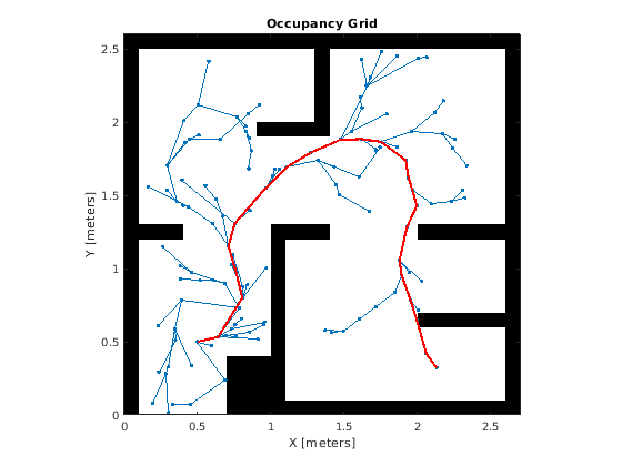 stateSpaceDubins параметры объектно-ориентированной памяти и состояния в пространстве состояний Dubins, которое состоит из векторов состояния, представленных [x, y, θ]. x и y являются Декартовы координаты, и θ является углом ориентации. Пространство состояний Dubins имеет нижний предел на поворачивающемся радиусе (заданный MinTurningRadius свойство в объекте) для навигации между состояниями и использования самая короткая выполнимая кривая, чтобы соединить состояния.