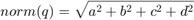 Обратите внимание на то, что, чтобы описать вращение с помощью кватерниона, кватернион должен быть модульным кватернионом. Модульный кватернион имеет норму 1, где норма задана как