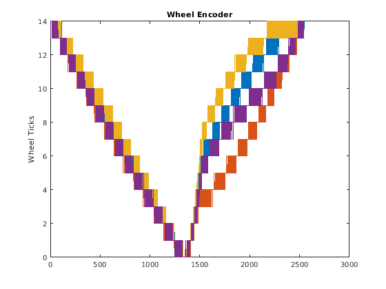 figure plot(ticks) ylabel('Wheel Ticks') title('Wheel Encoder')