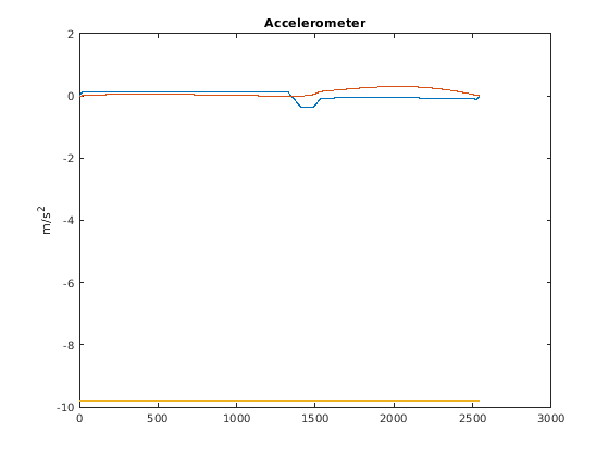 figure plot(accel) ylabel('m/s^2') title('Accelerometer')
