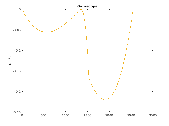 figure plot(gyro) ylabel('rad/s') title('Gyroscope')