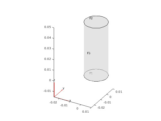 gm = multicylinder(0.01,0.05); addVertex(gm,'Coordinates',[0,0,0.05]); structuralmodel.Geometry = gm; pdegplot(structuralmodel,'FaceLabels','on','FaceAlpha',0.5)