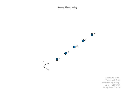 H = phased.ULA создает Системный объект универсальной линейной матрицы (ULA), H. Объектные модели ULA, сформированный с идентичными элементами датчика. Источник системы локальной координаты является центром фазы массива. Положительный x - ось является направлением, нормальным к массиву, и элементы массива расположены вдоль y - ось.