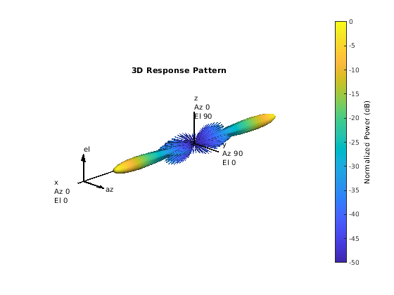 antenna = phased.ShortDipoleAntennaElement(... 'FrequencyRange',[5e9,10e9],'AxisDirection','Z');