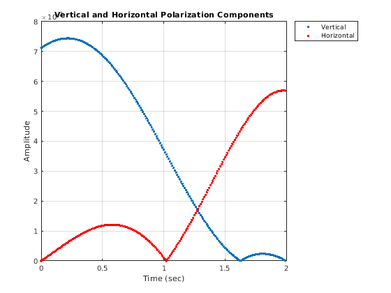 Следующий пример вычисляет вертикальные и горизонтальные компоненты поляризации поля. Вертикальная компонента является функцией угла возвышения и по оси симметрична. Горизонтальная компонента исчезает везде.