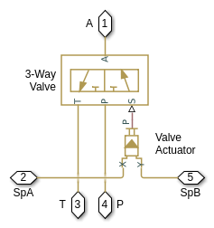 Модель обнаруживающего загрузку клапана создана с помощью Распределительного клапана С 3 путями, Гидравлического Привода клапана Двойного действия, Регулятора давления и блоков Фиксированное Отверстие, как показано в диаграмме модели (Рисунки 6 и 7).