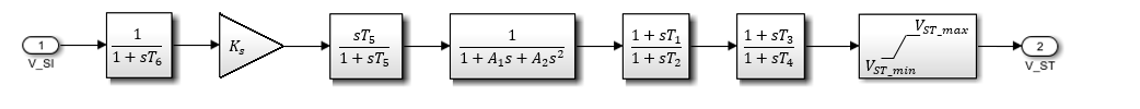 Блок Second-Order Low-Pass Filter (Discrete or Continuous) реализует фильтр нижних частот второго порядка в соответствии со Станд. IEEE 421.5-2016[1]. В стандарте фильтр является одним входом, один формирователь выходного сигнала, который используется в Стабилизаторе Энергосистемы PSS1A.