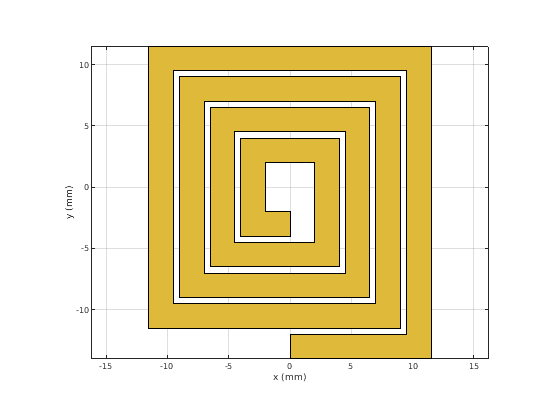 Форма PCB RF, созданная с помощью пользовательских элементов и объектов фигуры RF PCB Toolbox™ в виде объекта.