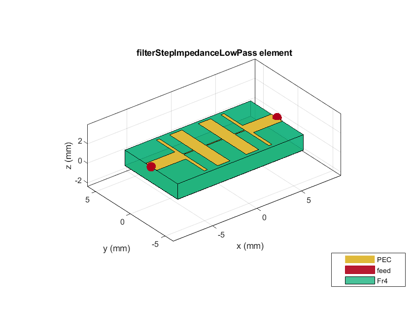 Этот пример показывает вам, как спроектировать ступенчатый фильтр нижних частот импеданса для приложений X-полосы.