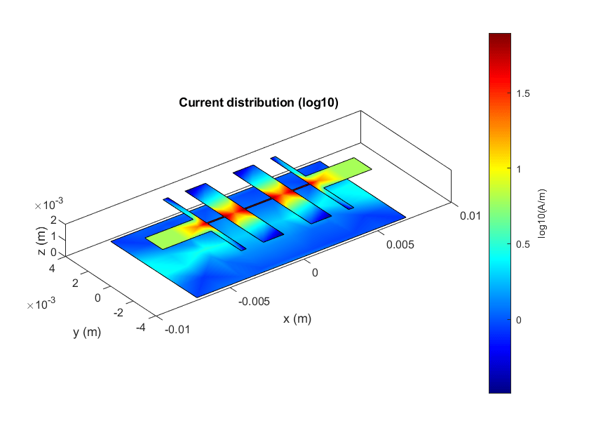 Используйте current функционируйте, чтобы построить распределение тока на поверхности ступенчатого импеданса фильтр lowpass ниже частоты среза и просмотреть ее mesh.