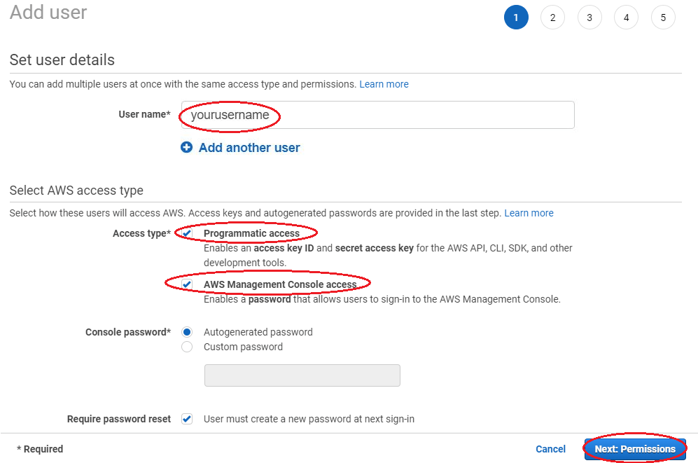 Нажмите Users в консоли I AM, и затем нажмите Add User. Чтобы завершить создание меня пользователь AM, выполните шаги добавлять-пользователя AWS, который следующие пять подразделов.
