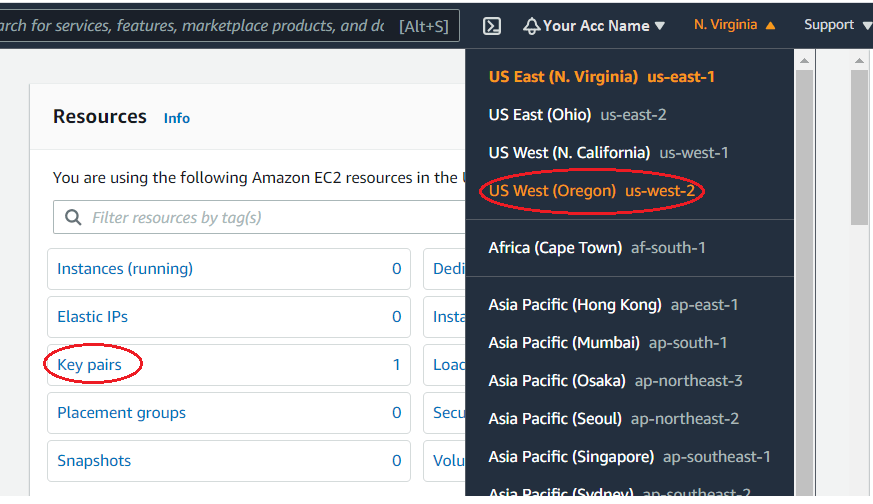 Создайте пару ключей EC2 для области AWS, где вы планируете получить данные. Пара ключей EC2 используется, чтобы соединиться с вашими экземплярами EC2 для отладки и получить состояние сбора данных.