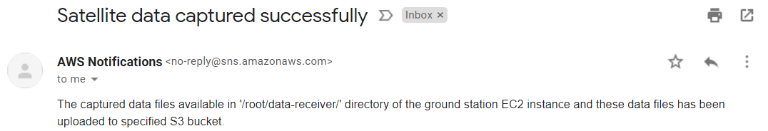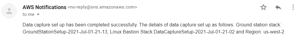 После планирования контакта вы получаете уведомление по электронной почте AWS относительно состояния вашего контакта. Этот рисунок показывает пример успешного резервирования контакта.