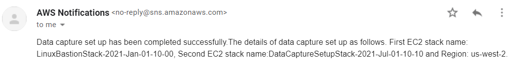После того, как вы завершите настроенный сбор данных, вы получаете уведомление SNS. Этот рисунок показывает пример этого уведомления.