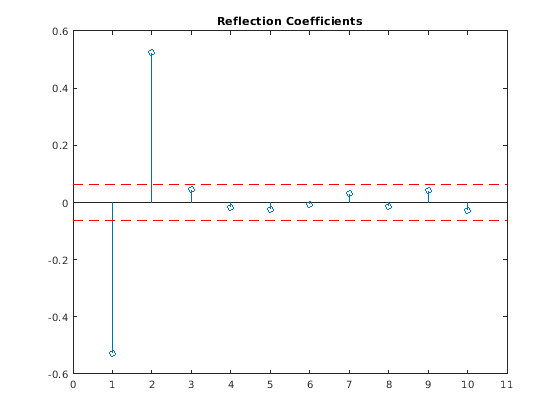 aryule использует рекурсию Левинсона-Дербина на смещенной оценке демонстрационной последовательности автокорреляции, чтобы вычислить параметры.
