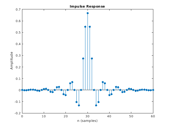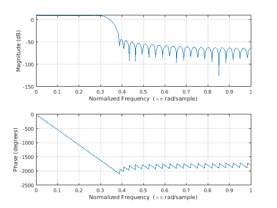 resample выполняет КИХ-использование проекта firls, нормирует результат с учетом усиления обработки окна, и затем реализует использование изменения уровня upfirdn.