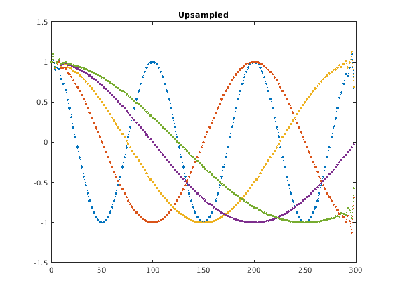 decimate | downsample | fillgaps | firls | interp | interp1 | intfilt | kaiser | spline | upfirdn | upsample