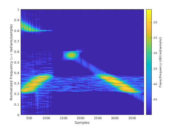 xspectrogram(___, задает ось, на которой можно построить частоту. Задайте freqloc)freqloc как любой 'xaxis' или 'yaxis'.