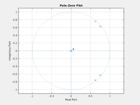 Исследуя размещение полюсов, вы видите этот AR (4), процесс также устойчив. Четыре полюса в модульном кругу.
