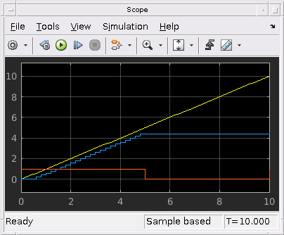 • Блок сконфигурирован для значения по умолчанию параметра Initial condition (0).